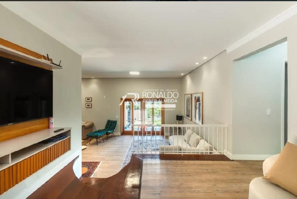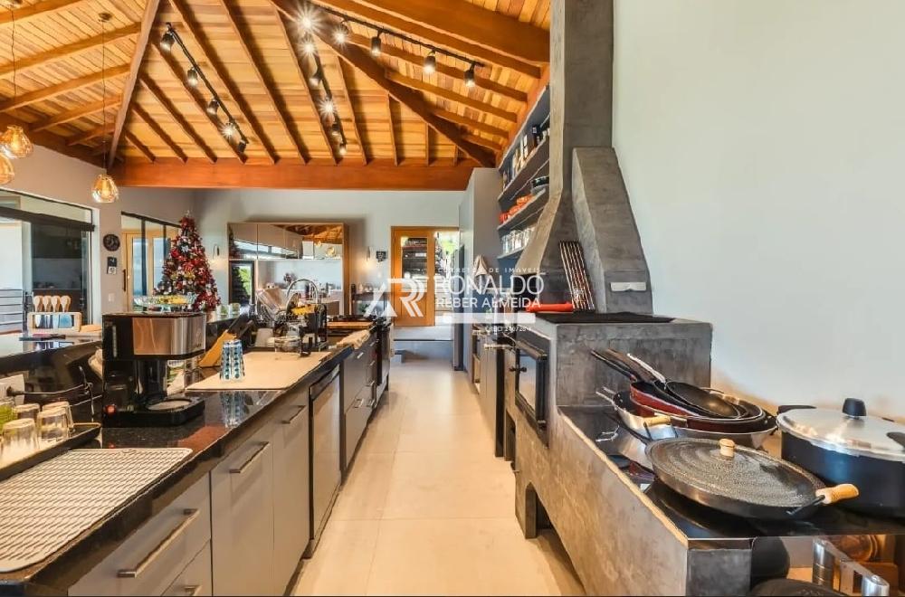 A sala de estar com vários ambientes tem sala de lareira, estar e TV. A cozinha foi alocada em um espaço externo ao da casa principal, mas facilmente acessada. Foi onde os proprietários destinaram para receber familiares e amigos, aproveitando o prestígio das belas paisagens e vistas de tirar o fôlego de qualquer canto do ambiente. Fogão à lenha, churrasqueira, ilha central grande, sala de TV integrada para apoio aos eventos, sala de jogos, lavabo e sala de jantar. Com teto revestido de madeira e iluminação projetada, é o ponto mais utilizado da casa.