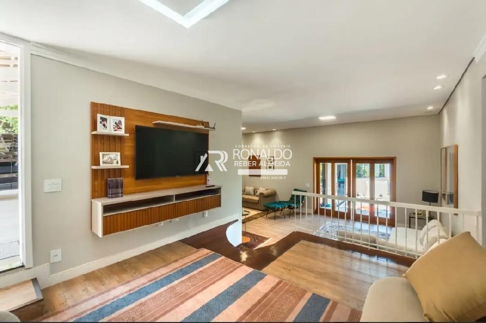 O quintal é muito espaçoso e com vários níveis de topografia, devido a tipologia do terreno. Jardins e plantas compõem o quintal, que o convida para o descanso e apreciação da natureza. No nível mais baixo utilizado do terreno, há a área de lazer externa, com ampla piscina, solarium e pergolado.