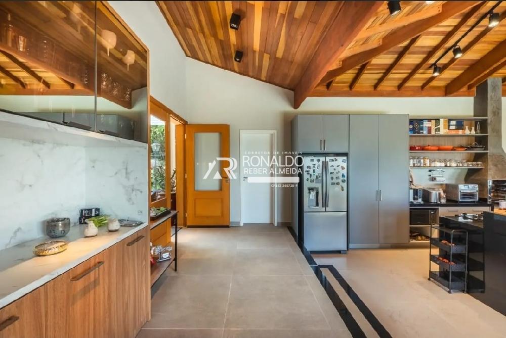 A sala de estar com vários ambientes tem sala de lareira, estar e TV. A cozinha foi alocada em um espaço externo ao da casa principal, mas facilmente acessada. Foi onde os proprietários destinaram para receber familiares e amigos, aproveitando o prestígio das belas paisagens e vistas de tirar o fôlego de qualquer canto do ambiente. Fogão à lenha, churrasqueira, ilha central grande, sala de TV integrada para apoio aos eventos, sala de jogos, lavabo e sala de jantar. Com teto revestido de madeira e iluminação projetada, é o ponto mais utilizado da casa.